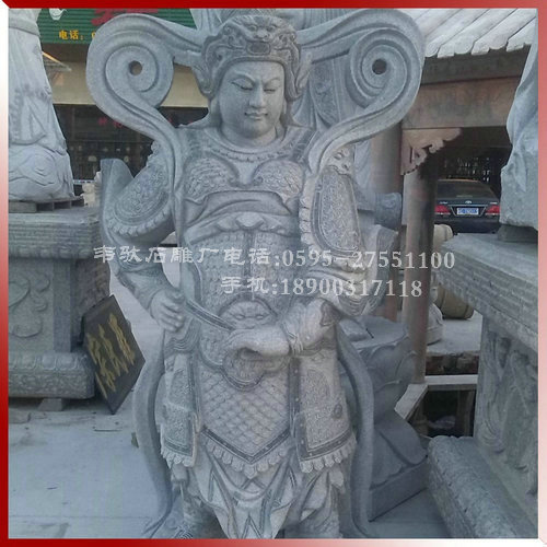 4、韋陀:韋陀菩薩是佛的護(hù)法神(佛教中另外還有一位護(hù)法天神韋天將軍)。相傳他姓韋名琨,是南方增長(zhǎng)天王屬下八大神將之一,位居32員神將之首(四大天王每人手下有八神將)。據(jù)說(shuō),在釋迦佛入涅時(shí),邪魔把佛的遺骨搶走,韋陀及時(shí)追趕,奮力奪回。因此佛教便把他作為驅(qū)除邪魔,保護(hù)佛法的天神。從宋代開(kāi)始,中國(guó)寺廟中供奉韋陀,稱為韋陀菩薩,常站在彌勒佛像背后,面向大雄寶殿,護(hù)持佛法,護(hù)助出家人。