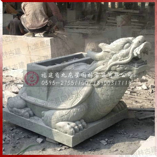 人們參觀游覽中國的陵墓、廟宇和園林時,常常會看到一座座石龜馱碑,它們的造型古樸、碑體細滑,有的碑文刻制精致,字字有姿,為保護碑文,以免風雨,有的還蓋有碑亭。 石龜馱碑主要由碑首、碑身和碑座三部分組成。由于碑首常以螭首雕飾,故又稱“螭首龜趺”?!绑な住笔驱埖木抛又?而人們常誤稱它是龍頭。 中國在石碑上刻文由來已久。凡皇帝書寫的御碑都由石龜做底座。雖則有些碑文是歷代社會名流或文臣為皇上代寫的,但碑文卻記載首帝王對重大政治歷史事件的論述,其內(nèi)容無非是為帝王歌功頌德。 傳說馱碑的石龜是龍的第九子。它力大無窮,能馱三山五岳,常在江海里興風作浪。大禹治水時,常讓它推山挖溝,為治水做出過貢獻。治好洪水后,大禹怕龍子惡習不改,于是便用一塊特大的石塊壓在它的背上,石碑上刻有治水的功績,這樣它永遠也不能亂動了??梢?龍子本不屬龜類,只因叫的人多了,也就成了“龜”,并一直沿稱下來。