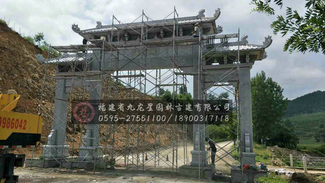牌坊作為中國傳統(tǒng)的建筑模式,其擁有更多自己的風(fēng)格與特色,成為外國學(xué)者們研究中國建筑文化的主要途徑和方式。傳統(tǒng)石牌坊設(shè)計(jì)形式多樣,傳承到如今,牌坊更多是發(fā)揮其標(biāo)志性作用,在新農(nóng)村建設(shè)中普遍應(yīng)用。