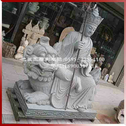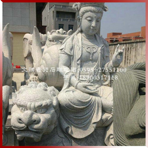 文殊菩薩:大智文殊菩薩右手高舉慧劍,寓意斬?cái)酂?。左手持?且蓮上通常還有經(jīng)卷