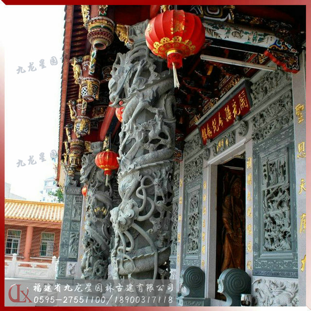 寺廟石雕龍柱是一種龍形浮雕圓柱,通身塑有纏柱云龍,栩栩如生,立在廣場路邊成為景觀和地標(biāo)。在我們福建閩南沿海地區(qū)幾乎逢廟必有龍柱,讓人可以從龍的軀體雕鑿中感受到古代藝匠想要極力表達(dá)的“龍行虎步”、“龍虎精神”的意念。龍柱是中華民族的傳統(tǒng)建筑物,有著悠久的歷史。