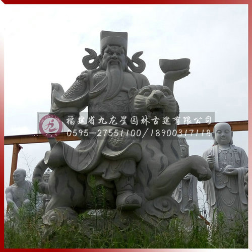 財神有文財神和武財神之分,文財神為比干,武財神為關(guān)羽和趙公明。武財神是漢族民間信仰的一位財神。關(guān)帝閣的武財神關(guān)羽手持青龍偃月刀,形象威武,義薄云天。趙公明一手拿元寶,一手拿長鞭。當今道教宮觀中的財神神像,多為黑面濃須,騎黑虎,一手執(zhí)銀鞭,一手持元寶,全副戎裝。該財神像當為財神,即趙公元帥像。趙公元帥,即趙公明、趙玄壇。供奉武財神寄托了漢族勞動人民一種祛邪、避災、祈福的美好愿望。