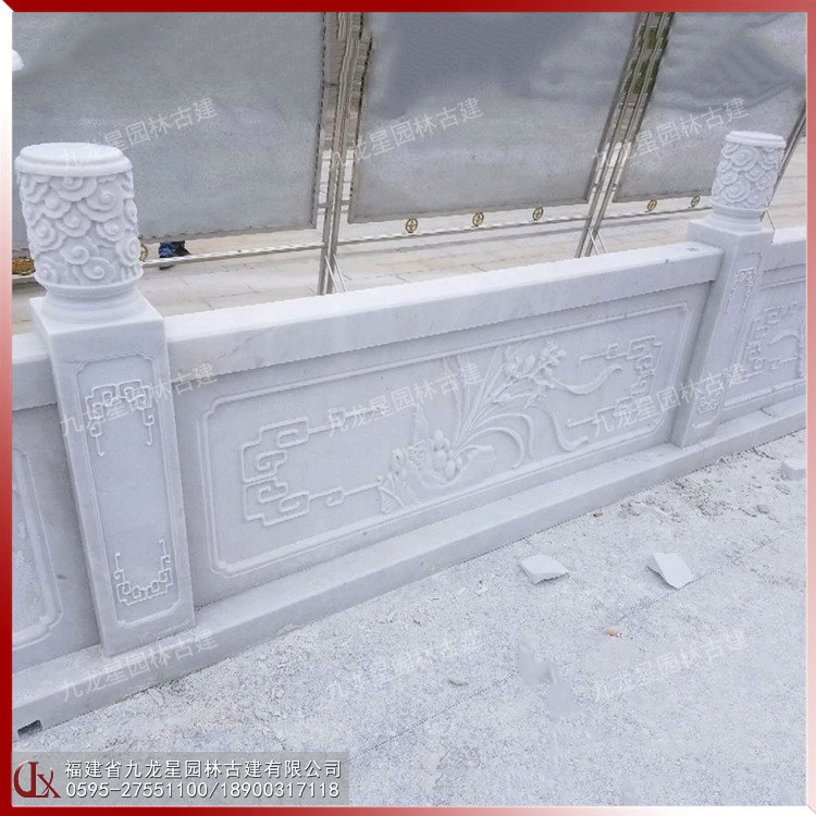 學(xué)校廣場(chǎng)石雕防護(hù)欄 漢白玉欄桿石雕圖片