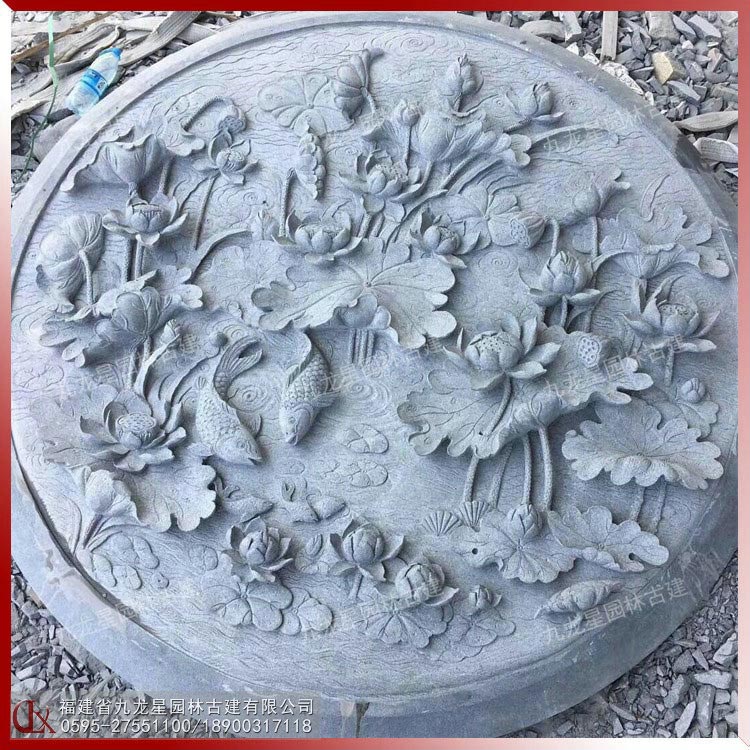 魚戲蓮葉 石雕蓮花浮雕圖片 荷花魚浮雕壁畫